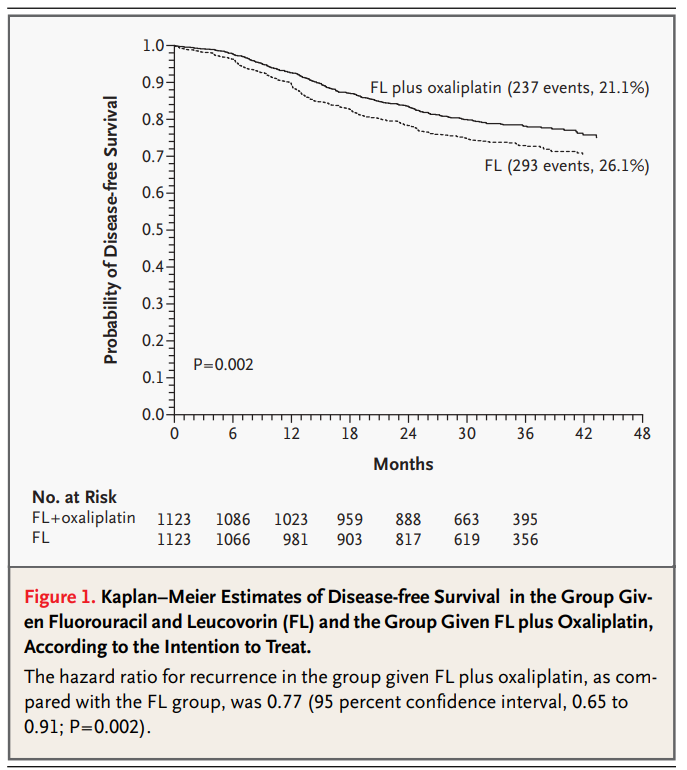 [5]. André T, Boni C, Mounedji-Boudiaf L, et al. Oxaliplatin, fluorouracil, and leucovorin as adjuvant treatment for colon cancer. N Engl J Med. 2004;350:2343-2351.