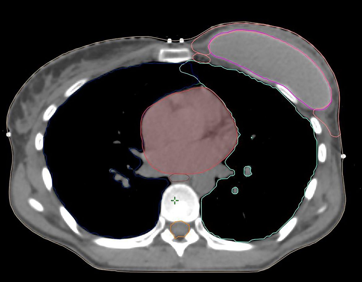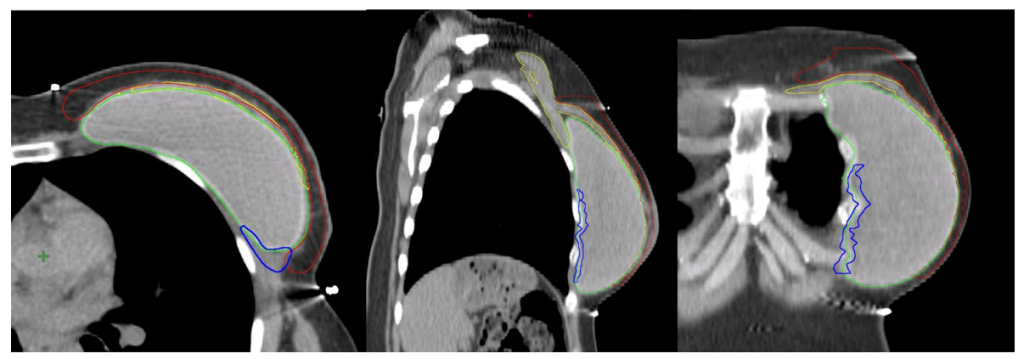 Một điểm quan trọng cần nhà xạ trị chú ý, ước tính 5-10% mô tuyến vú còn tồn dư sau phẫu thuật cắt toàn bộ tuyến vú quy ước, phải được bao phủ trong thể tích CTVp_chestwall.
